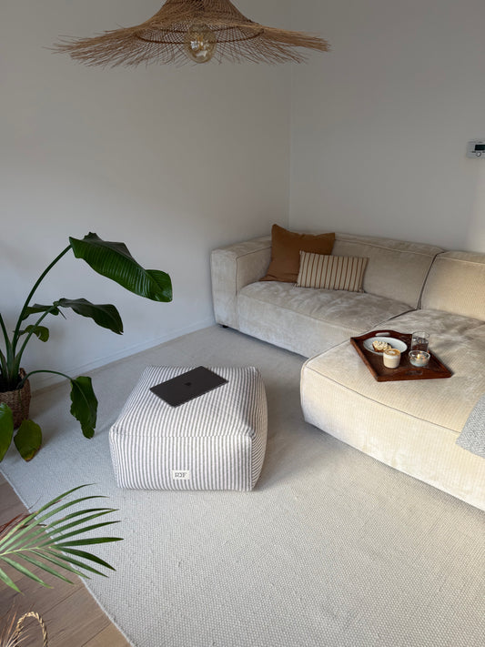 Beige striped pouf