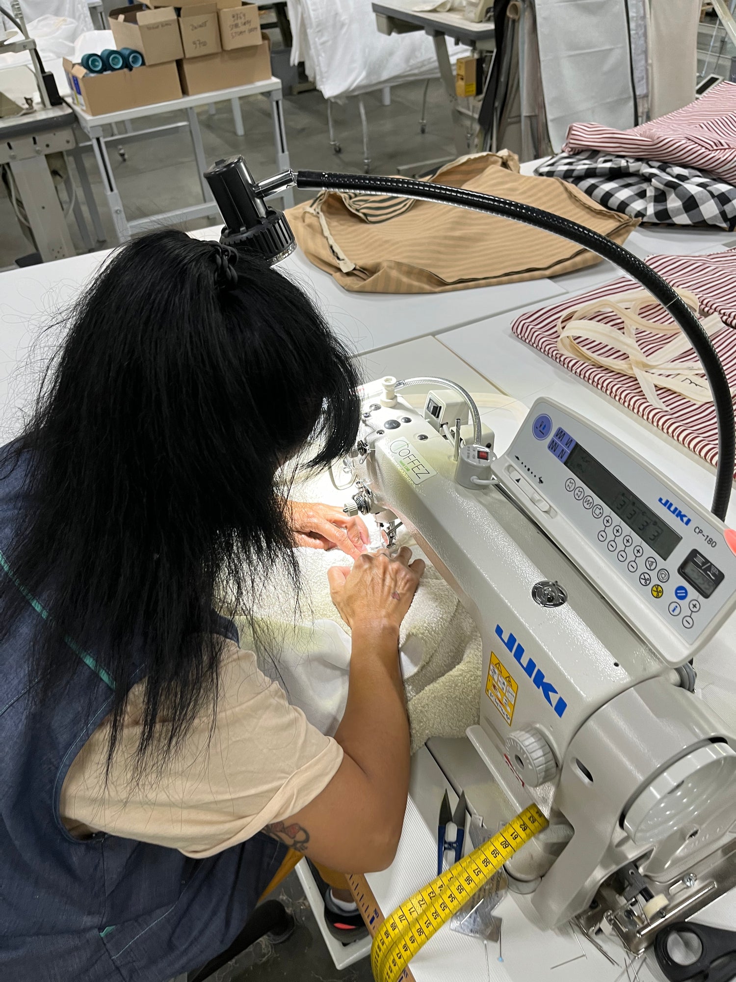 Onze collecties worden stuk voor stuk gemaakt in samenwerking met een maatwerkbedrijf in Antwerpen. Een warme werkplek waar mensen met een afstand tot de arbeidsmarkt werken aan elk item. Met precisie, trots en vakmanschap. Zo krijgt elk stuk een verhaal – eentje dat klopt tot in de details.