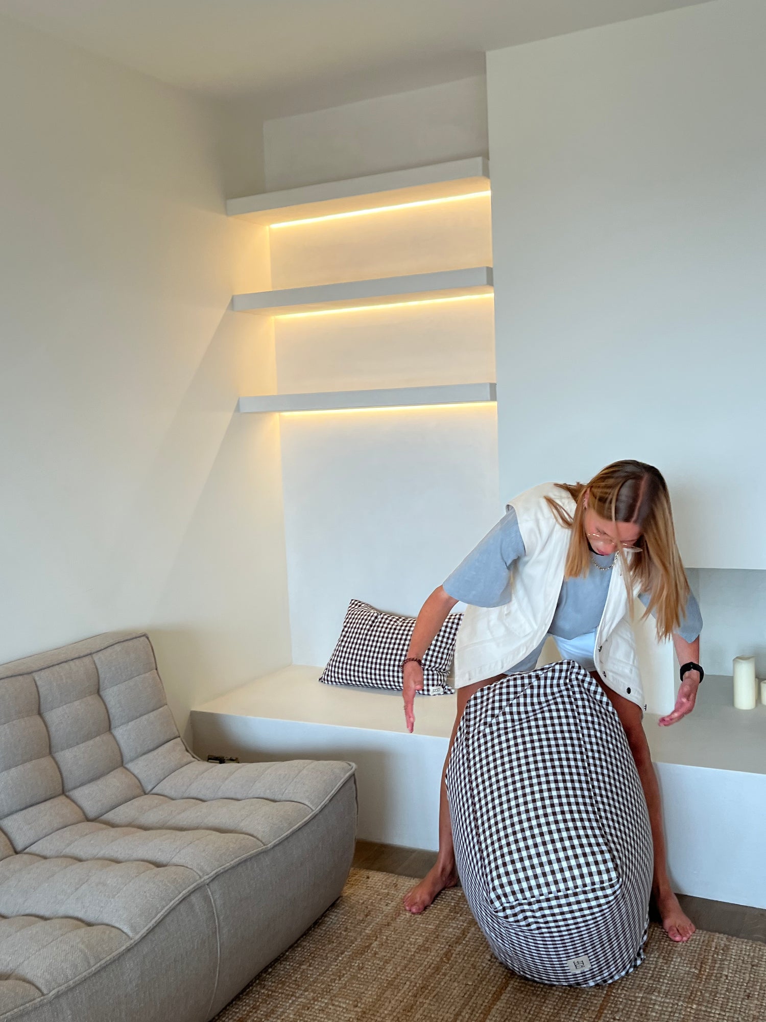 POEF werd in 2023 opgericht door mezelf (Elise), ontstaan uit een persoonlijke zoektocht naar precies dat ene interieurstuk dat mooi, én functioneel, én matchte met mijn stijl. Gedreven door de goesting om ideeën zelf tot leven te brengen, ontwierp en maakte ik mijn allereerste poefs.