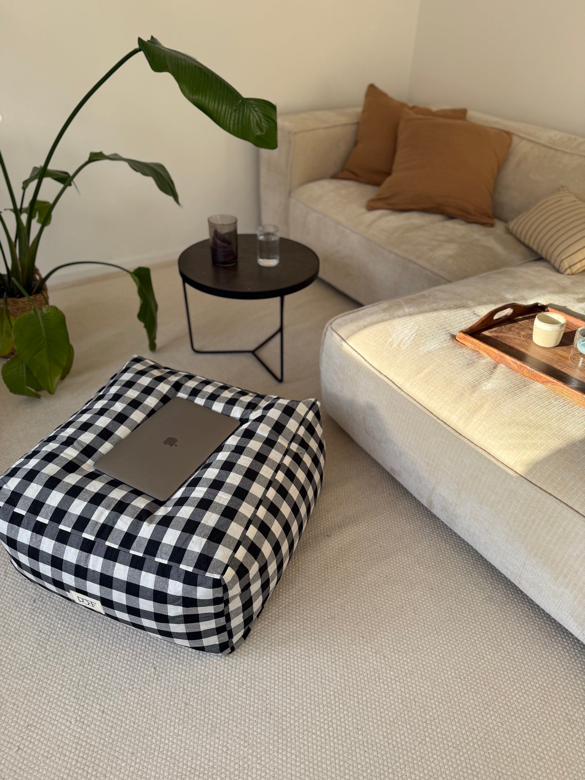 Each pouf comes with a bespoke inner cushion, typically made from a high-density foam blend that provides a medium-firm, supportive feel, perfect for sitting or using it as a table.