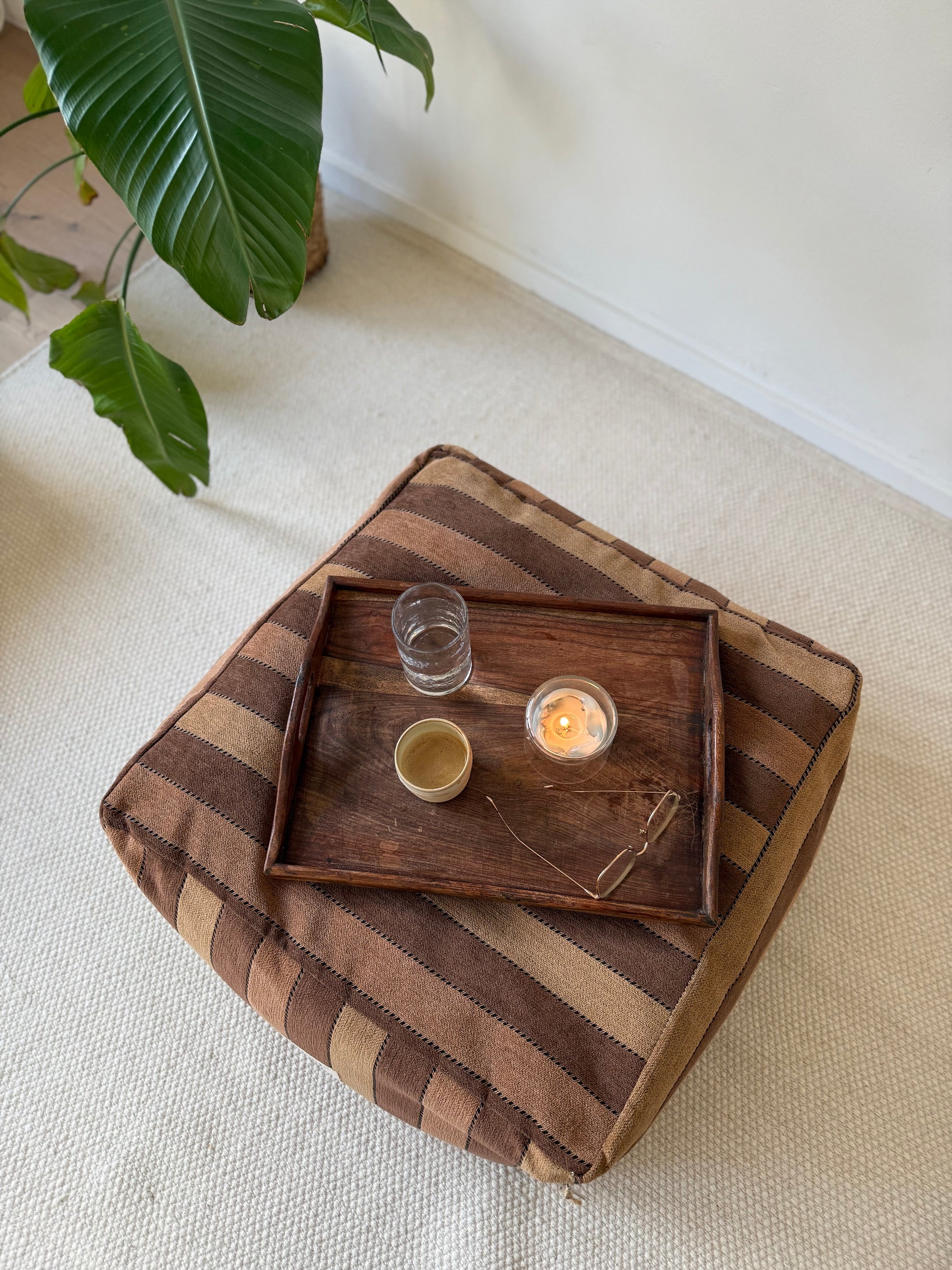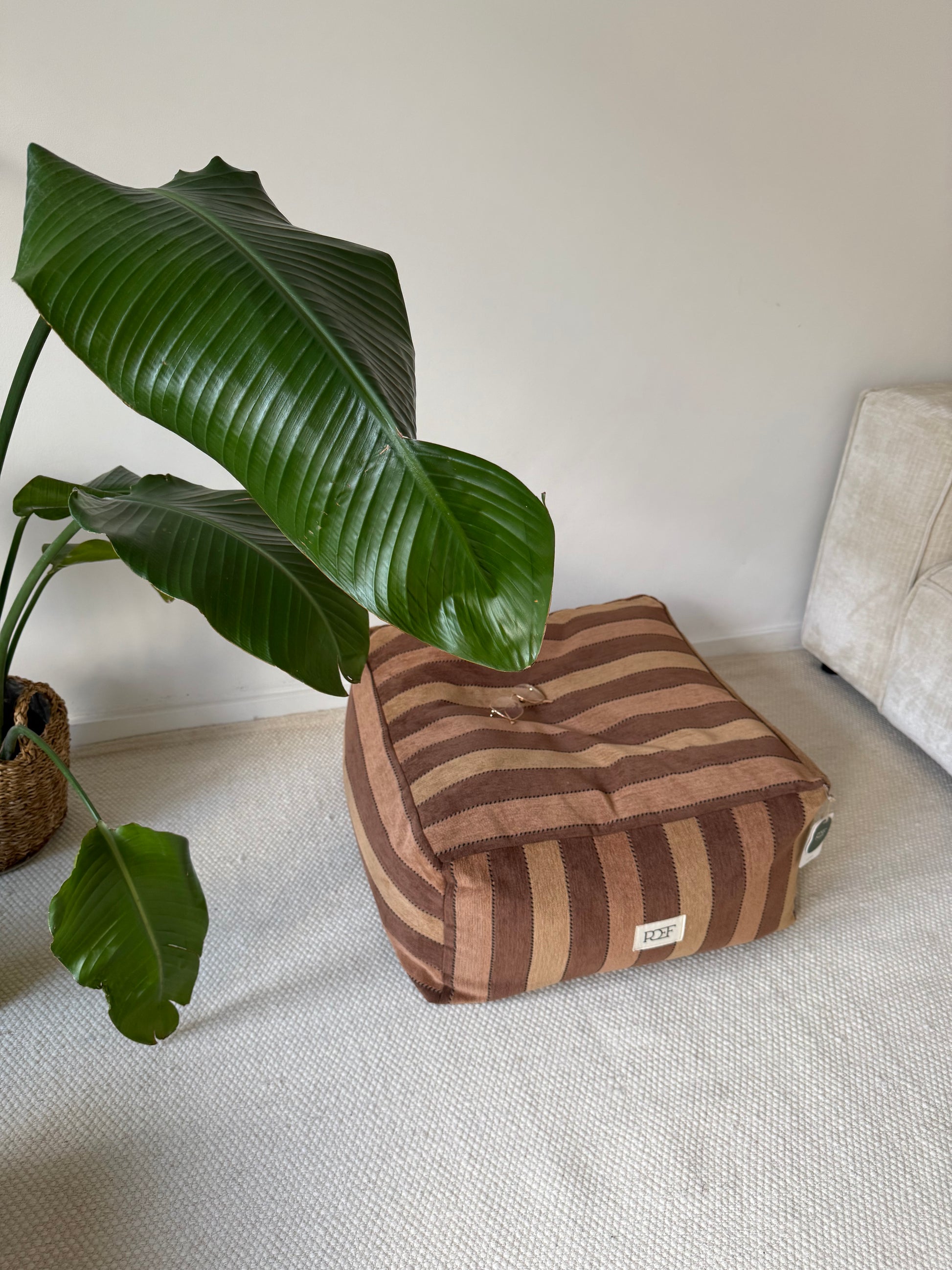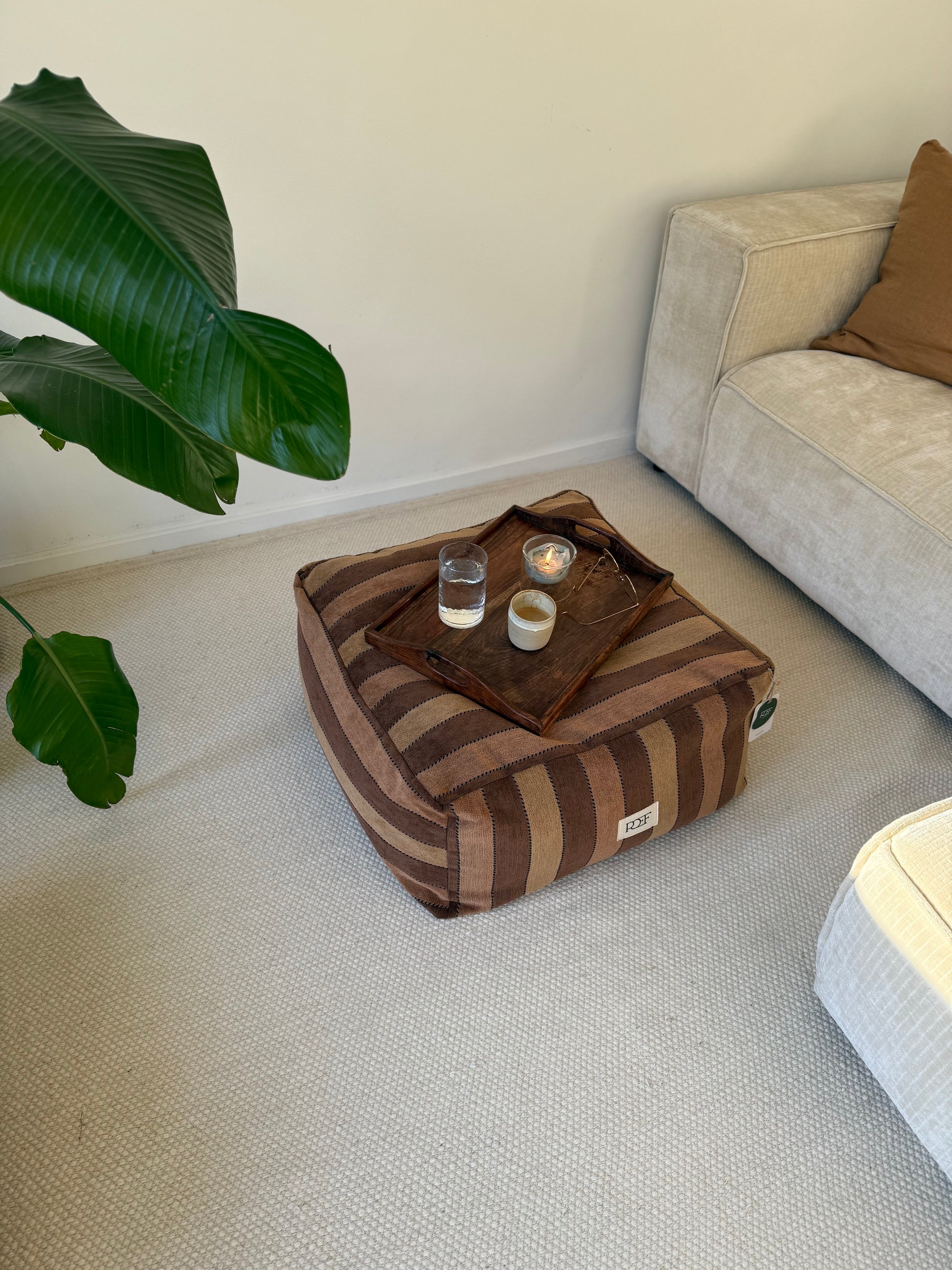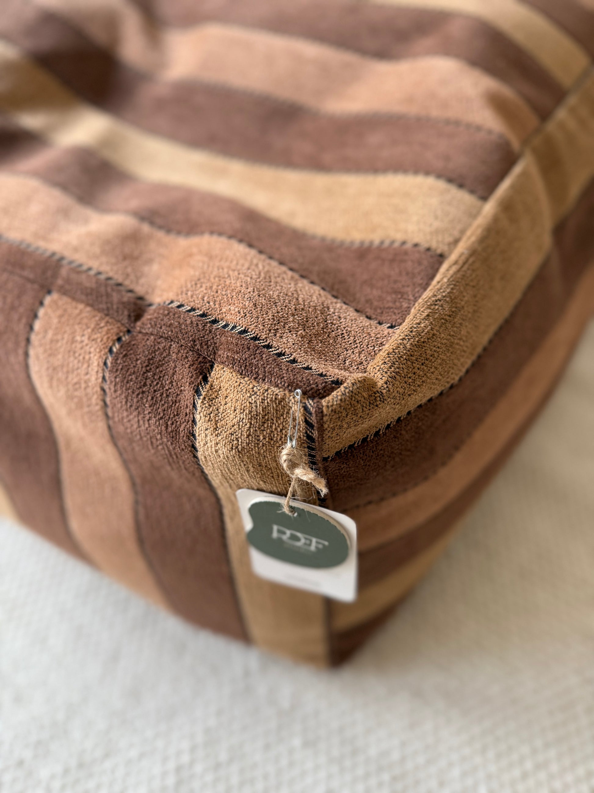 Each pouf comes with a bespoke inner cushion, typically made from a high-density foam blend that provides a medium-firm, supportive feel, perfect for sitting or using it as a table.